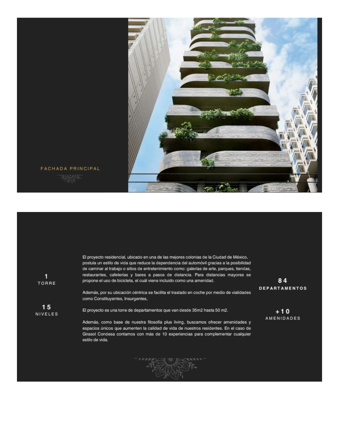– Estructura: 1 Torre de 15 niveles con un total de 84 departamentos.