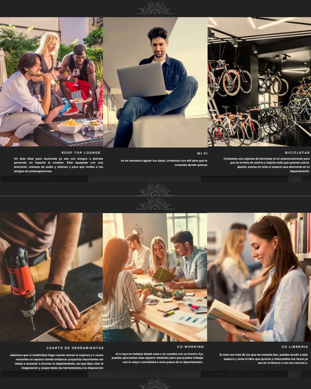 – Productividad: Espacio de Co-working, Co-librería y WiFi de alta velocidad en áreas comunes.